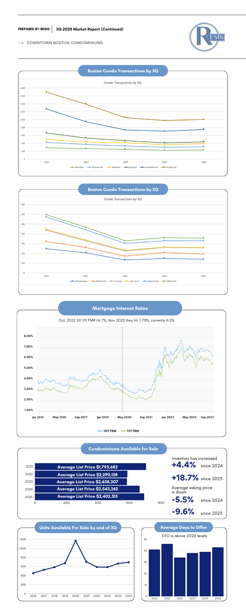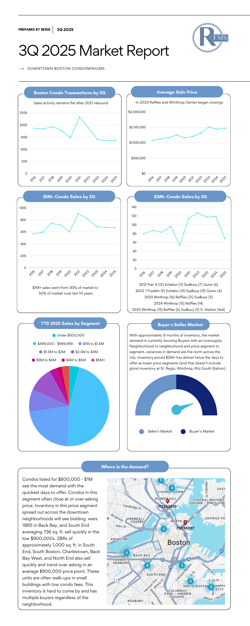 Condo activity is holding steady. Buyers have an advantage in most Boston markets, even in the face of higher interest rates, but bidding wars and over-asking sales are still occurring for the right inventory at the right price.